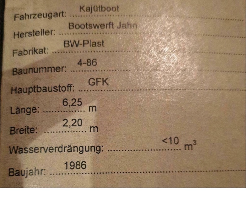 Das kann aber nicht sein, da im Jahr 1986 Boote mit der Baunummer 40 und höher gebaut wurden. Evtl. handelt es sich um die Nummer 40.
