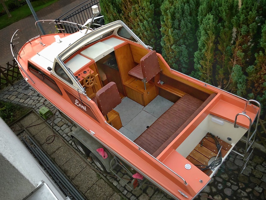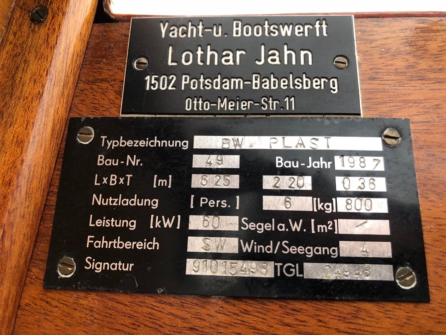Meines ist eine BW komplett in GFK, genauso wie Ihre. Der Holz-Innenausbau war das Gesellenstück des jüngeren der beiden Jahn-Brüder und hat somit einige kleine Besonderheiten. Das Boot wurde für privat gebaut, ich bin der zweite Besitzer (incl. Ernst-Riss).