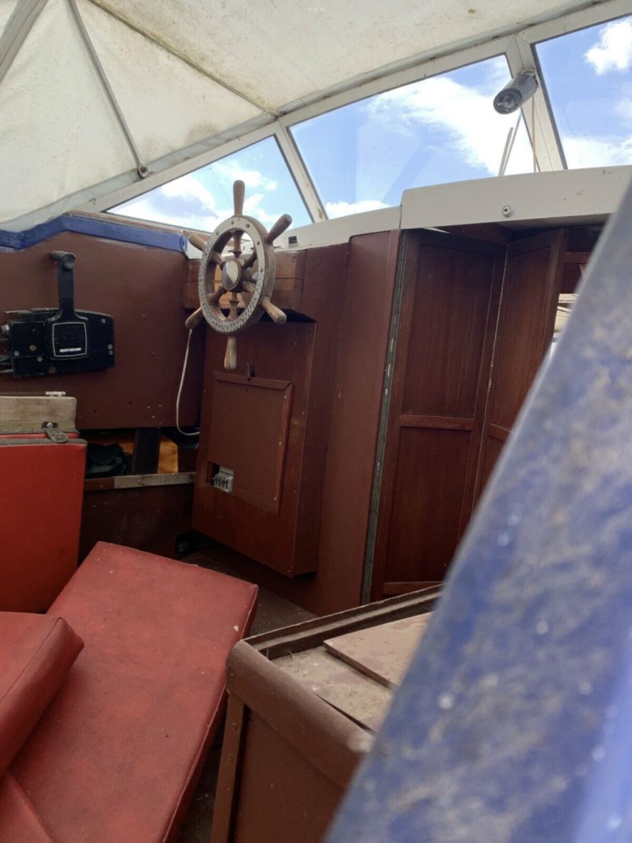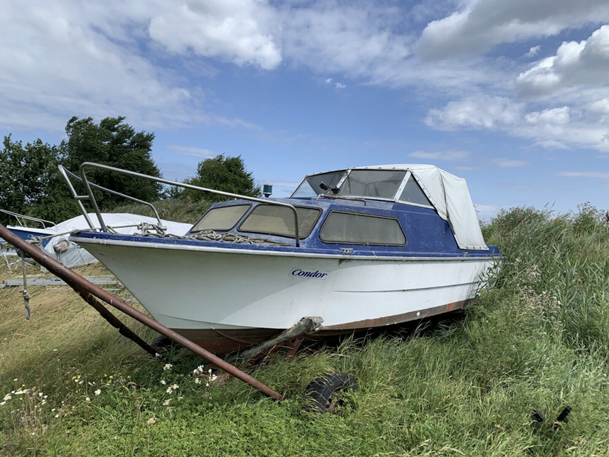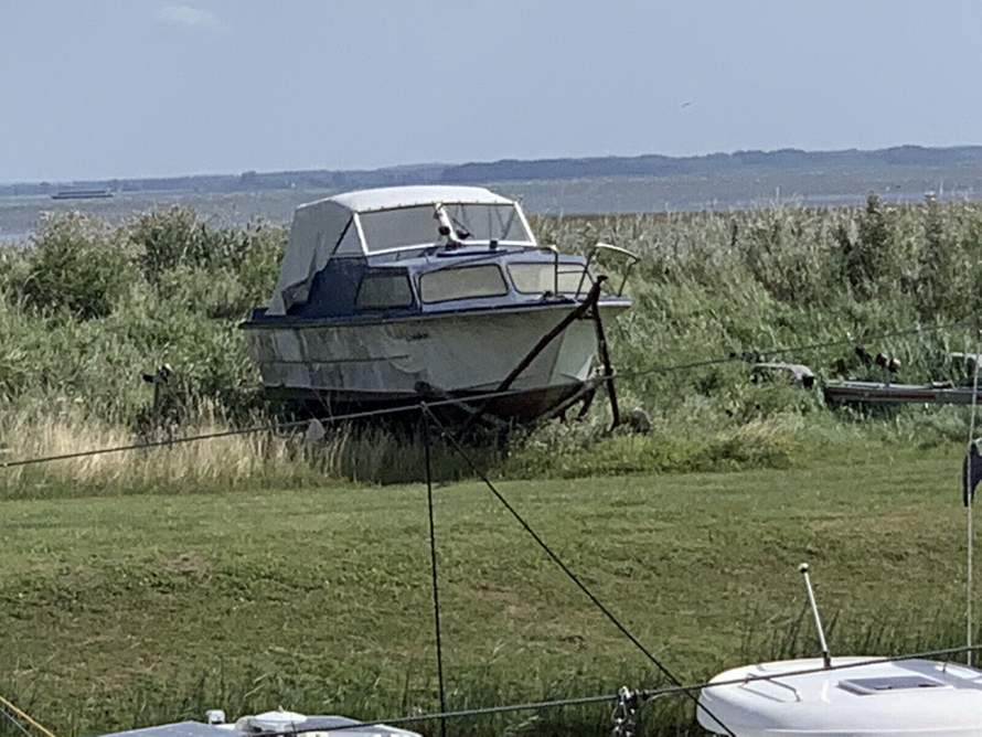 Wer genau hinschaut, erkennt, dass das Boot unter dem blauen Anstrich orange ist.