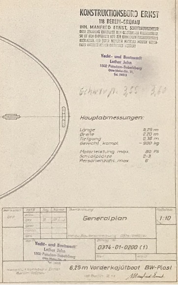 Mit dem Boot erhielt ich eine Kopie der Konstruktionszeichnung von Herrn Manfred Ernst.